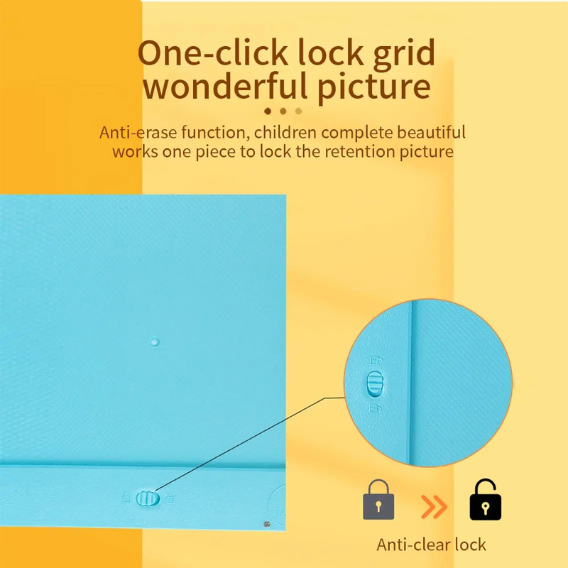 Su batería de larga duración permite usarla hasta un año completo sin necesidad de recargas frecuentes. Además, incluye un bloqueo antiborrado para evitar eliminar notas o dibujos por accidente.