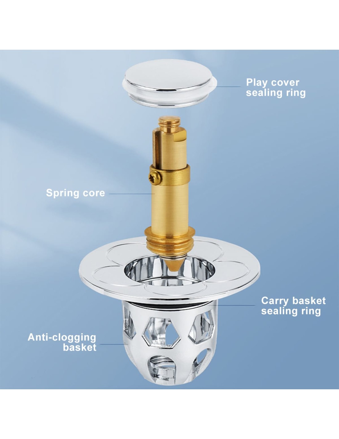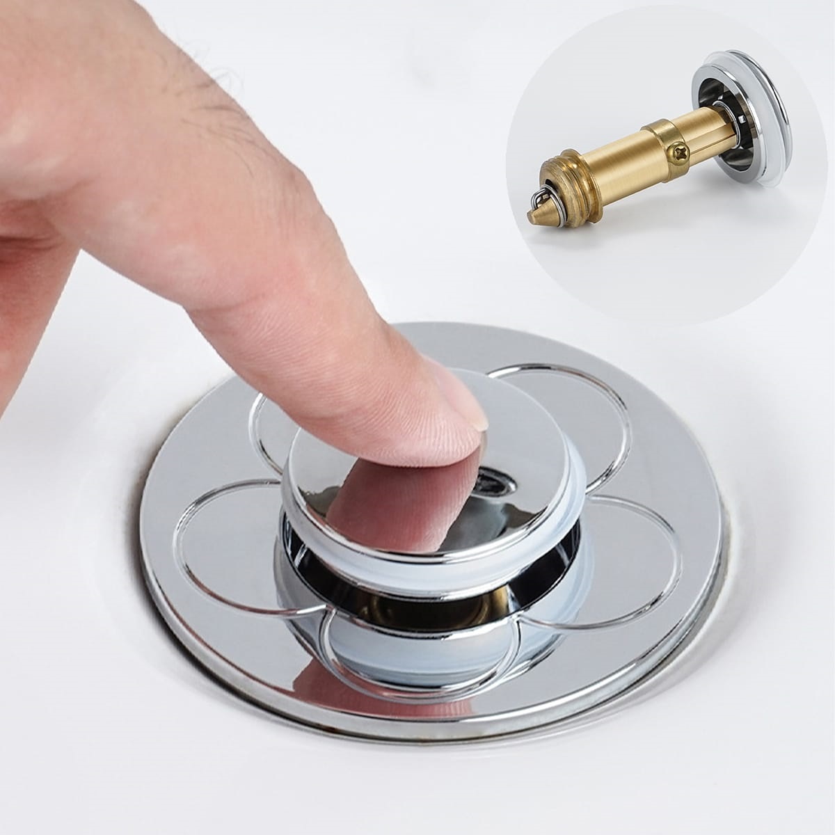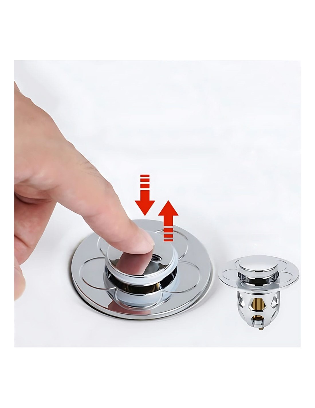El mecanismo de drenaje rápido por pulsación permite abrir o cerrar el tapón con un solo clic, brindando comodidad y eficiencia. Compatible con la mayoría de lavabos y bañeras, su anillo doble de silicona asegura un sellado perfecto sin fugas.