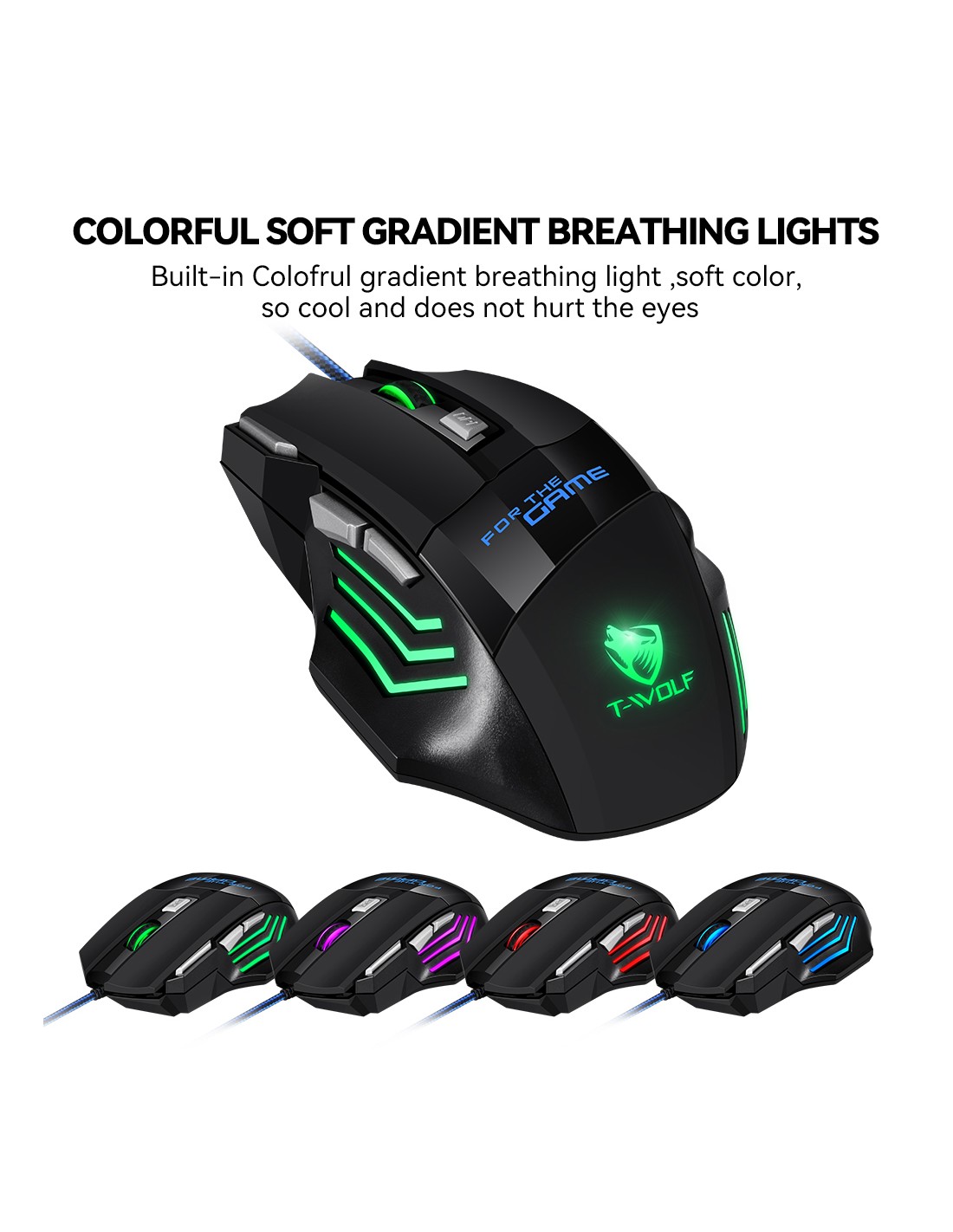 4. Luces coloridas Streamer RGB: el ratón tiene luces de respiración RGB de 7 colores que añaden un toque de color a su configuración de juego.