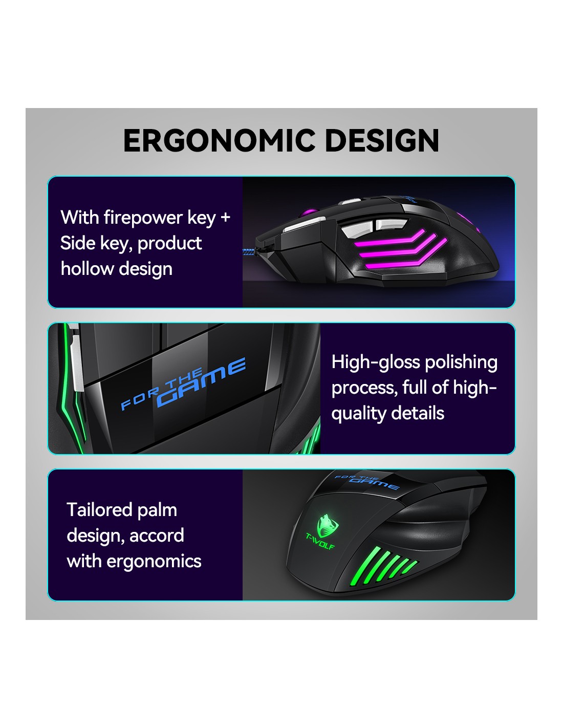 7. DPI ajustable: El ratón le permite ajustar el DPI de 400 a 8000, lo que le brinda la flexibilidad de personalizar su experiencia de juego.