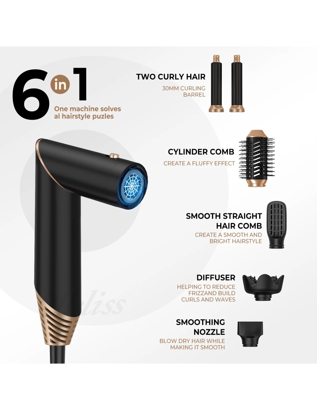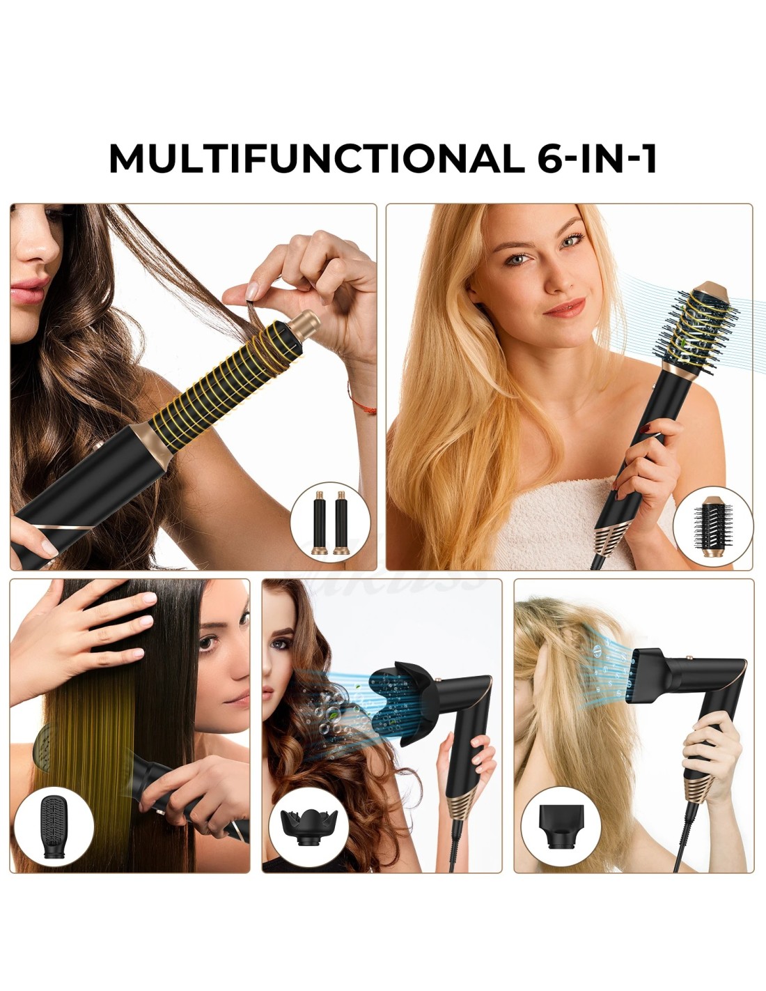 Secador de pelo Multifuncional 6 en 1 – Secado, Moldeado y Brillo Profesional