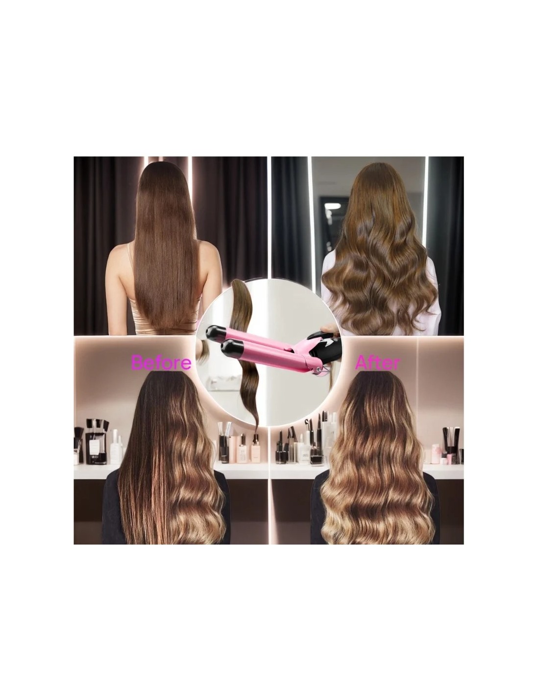 Rizador de Pelo Triple Tubo Profesional – Ondas Naturales, Brillo y Estilo que Duran Todo el Día